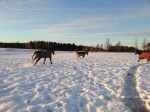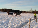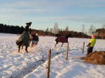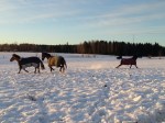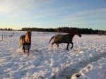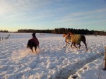 Jag skrev ju i förra inlägget att någonting spännande skulle hända i förmiddags och det var nämligen att vi släppte ihop Olle med Dacke och Tyra därför att Blixten kommer tillbaka imorgon då jag ska bli fodervärd till honom och då ska han gå ihop med Alice och då var vi tvungna att flytta på Olle.