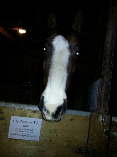Han var jätteduktig bortsett från lite slarv över bommarna ett par gånger, men överlag så var han jätteduktig. Tyvärr gör han dock som många andra hästar som longeras med inspänningstyglar: drar in nosen då och då för att undkomma trycket från bettet. Detta trots att jag inte har för kort inställning på dem. Det är därför som jag inte är särskilt förtjust i inspänningstyglar egentligen, men använder dem då och då som komplement. Nästa gång ska jag nog byta ut dem mot chambon som är mycket snällare!