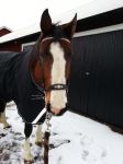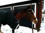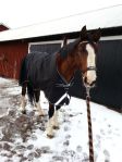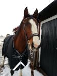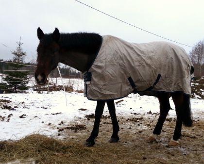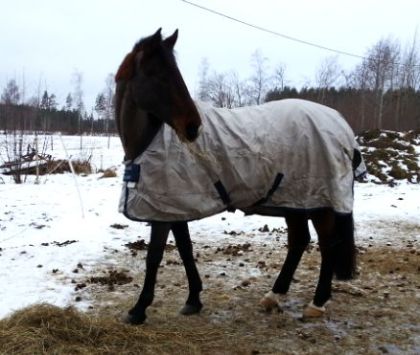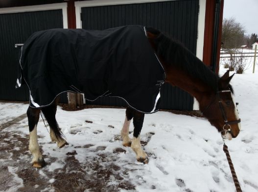 Jag glömde ju att skriva i förra inlägget att täcket på bilderna är helt nytt. Ett fleecefodratt regntäcke fyndat på Skara Hästsports REA för endast 299,-! I övrigt måste jag säga att deras REA var lite av en besvikelse. Det var mest udda storlekar och dyra märkeskläder (som blir dyra även efter att 50% dragits av!).