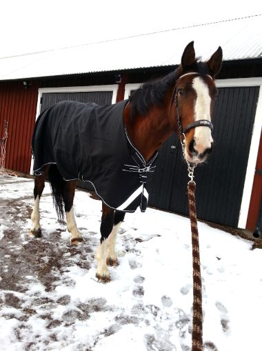 Jag glömde ju att skriva i förra inlägget att täcket på bilderna är helt nytt. Ett fleecefodratt regntäcke fyndat på Skara Hästsports REA för endast 299,-! I övrigt måste jag säga att deras REA var lite av en besvikelse. Det var mest udda storlekar och dyra märkeskläder (som blir dyra även efter att 50% dragits av!).