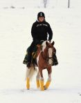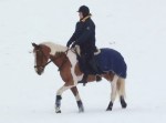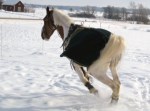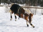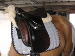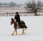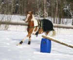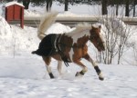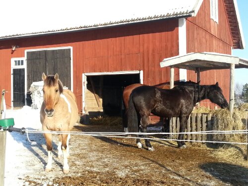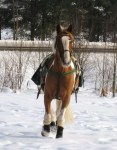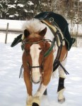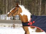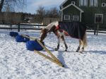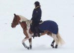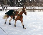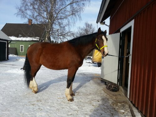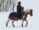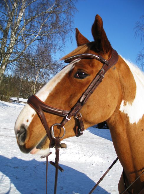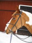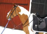 Efter det så red jag lite dressyr i skritt och avslutade med en kort busgalopp vilket var uppskattat av oss bägge. Dressyren gick ganska bra, faktiskt. Han börjar redan söka lite mer kontakt mot bettet, men det är ingen stabil kontakt ännu. Han är dock mycket, mycket lättare att svänga nu. Jag fortsätter arbetet med volter och serpentiner vilket verkar ge resultat. Återigen – Duktig Lilleman!