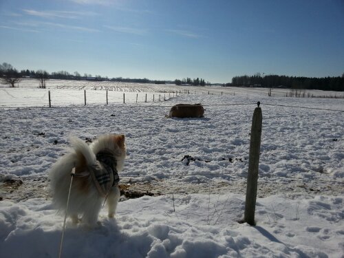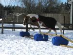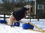 Idag fick Dingo först löshoppa lite (maxhöjd ca 60 cm) vilket gick bra bortsett från att han blev lite nonchalant ett par gånger. Han tyckte väl att det var så lågt att det inte var värt mödan att lyfta på tassarna! Men, i de flesta sprången så lyfte han på tassarna och det gjorde han väl! Duktig skrot!