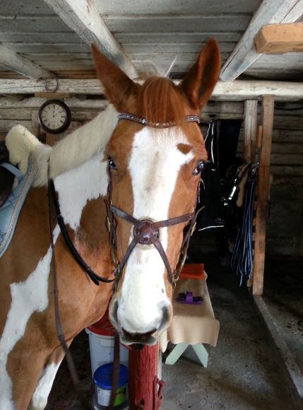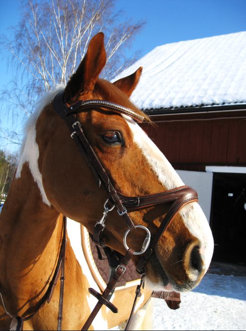 Efter det så red jag lite dressyr i skritt och avslutade med en kort busgalopp vilket var uppskattat av oss bägge. Dressyren gick ganska bra, faktiskt. Han börjar redan söka lite mer kontakt mot bettet, men det är ingen stabil kontakt ännu. Han är dock mycket, mycket lättare att svänga nu. Jag fortsätter arbetet med volter och serpentiner vilket verkar ge resultat. Återigen – Duktig Lilleman!