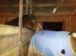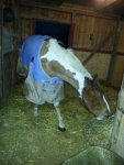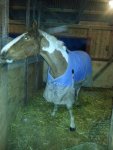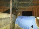 Lite bilder från kvällen. Dingo myser i nytt täcke med munnen full med hösilage.