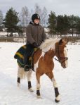 Eftersom Dingo stod igår så ville jag gärna göra någonting idag, men det stormade ju! Enveten så skulle jag ut ändå och beslöt mig för att rida i stora hagen för att göra ett litet blandpass med klättring, dressyr och lite busgalopp.