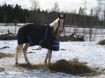Hööks har kampanjpris på två av sina täcken så då passade jag på att inhandla ett av varje till Dingo. Det är ett tunt regntäcke samt ett övergångstäcke med 100 gram foder.