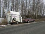 Som om inte dagen var tråkig nog med beskedet om Dingos öga så fick syrran och jag – på grund av en plötslig ishalka – besöka diket på väg hem. Jättekul. Eller inte. Både Nina och jag är OK bortsett från några ömmande ställen. Transporten klarade sig bra och det var ju en evig tur att inte Dingo var i den! Bilen, däremot, mår inte lika bra.
