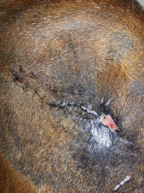 Igår tog jag bort klamrarna och jag tycker att det ser helt ok ut. Det var dock lättare sagt än gjort då han kastade med huvudet nästan hela tiden! Men, det gick till slut.