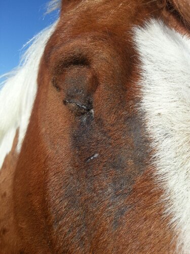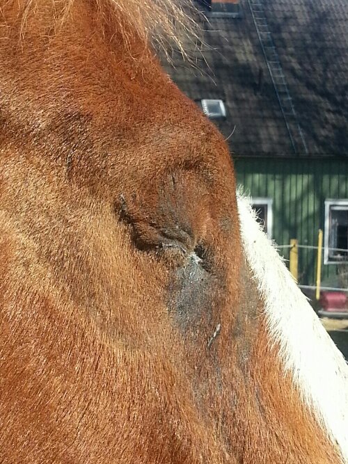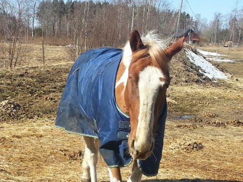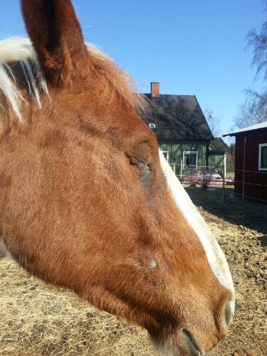 Dingos sår läker väldigt fint! Idag fick han till och med gå ut i den vanliga hagen (med träd). På grund av snålblåsten så fick han tyvärr inte gå utan täcke. Vart tog vårvärmen vägen??
