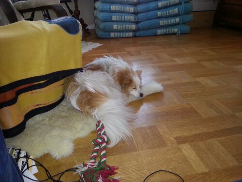 Djuren idag 10 april 2013 En trött Gizmo En glad Alice som fick gå i en större hage idag! En motsols-Dingo Lilleman var mindre lycklig över att Alice fick gå till den andra hagen. Han gillar INTE att gå själv! Jag behövde inte motionera honom för det skötte han själv.