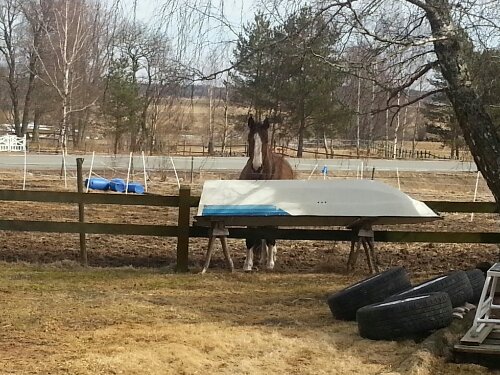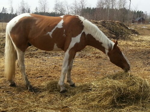 Dingo har också tråkigt och sysselsätter sig därför med att käka hösilage.