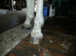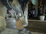 Idag var bäste hovslagaren Hans här och trimmade hästarnas tassar. Dingo har tyvärr råkat ut för bärrandsröta så på honom fick han skära upp en del på bägge fram hovarna och sätta gipsplugg med jodopax som ska rensa ur extra. Han fick även skor i fram och var fantastiskt duktig trots att det var första gången. Han är så redig, min Lilleman!