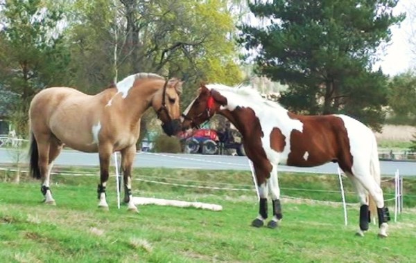 Dingo fick flytta ihop med Olle och det verkar gå jättebra! Olle blev lite sur när Dingo var för ”på” och gav honom en kick eller två, men förutom ett ytligt sår så skadade han sig inte. Efter det så har det – åtminstone vad jag har sett – gått lugnt till i hagen.