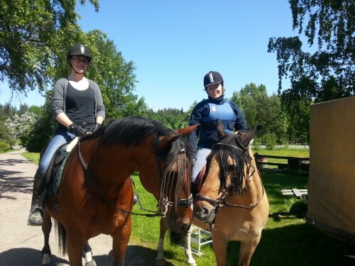 Jag fick låna Olle idag också och idag blev det en ganska lång uteritt i skritt och lite trav. Vi hade trevligt sällskap av Sara och Dacke. Härligt väder fick vi också! Underbart!