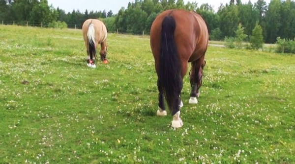 Idag är det mulet och då passade vi på att släppa ihop Alice och Olle. Att vi behövde vänta på mulet väder beror på att Alice bränner sig så i solljus. Det gick helt otroligt lugnt till! Alice skrittade fram till Olle (som inte brydde sig om Alice alls utan bara om gräset) och sedan gick hon ifrån honom och ställde sig och betade. Det var det. Jätteskönt och jag hoppas att det fortsätter så odramatiskt.
