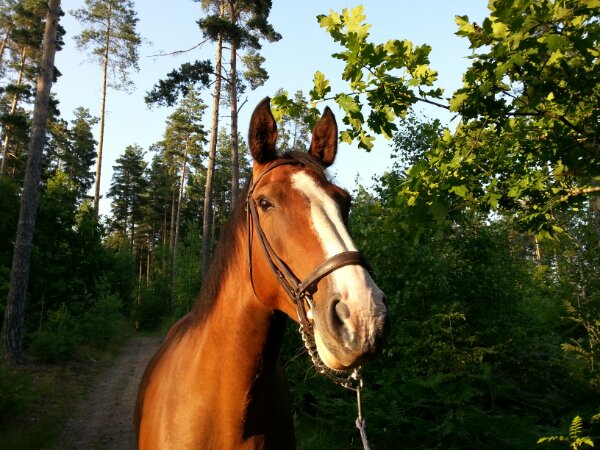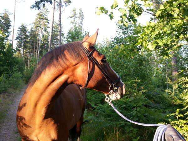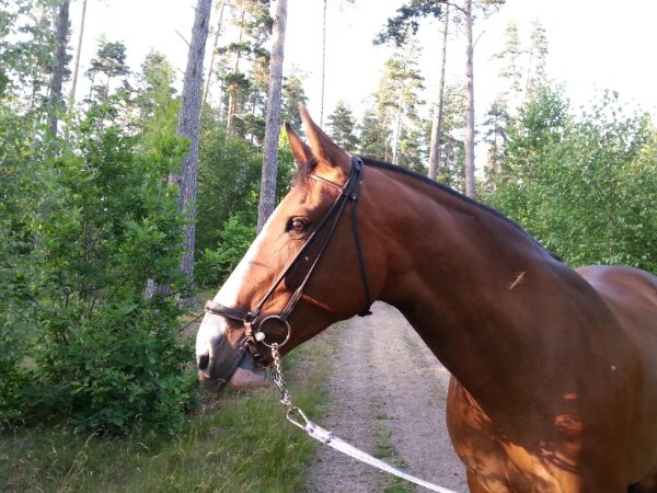 Här kommer lite bilder från promenaden igår. Visst är hon vacker? Och ett fint, stilrent träns – tycker jag.