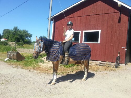 Angelica rustade Olle från topp till tå för en ridtur mitt på dagen. Det var dock ganska lugnt med insekter, visade det sig. Värre var det här hemma. Mycket blinningar just nu . Suck!