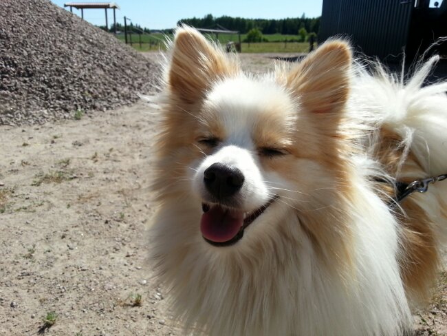 Den här lille söte bollen är Dingo som ligger och vilar på gruset utanför ligghallen (av alla ställen!).