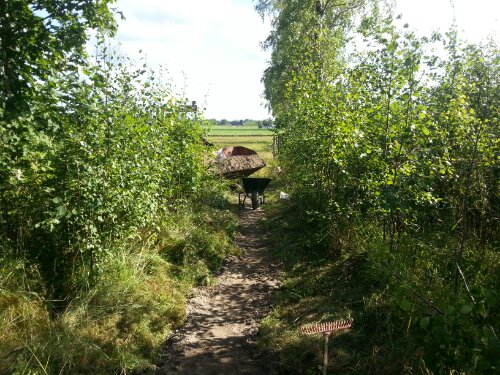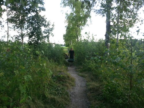 Igår gjorde vi en preparerad rid-/gångstig genom vår dunge så att man slipper gå/rida på vägen. Vi har förvisso gått/ridit där även tidigare, men det har varit snårigt och väldigt ojämnt med stenar och rötter som både vi och hästarna snubblade på.