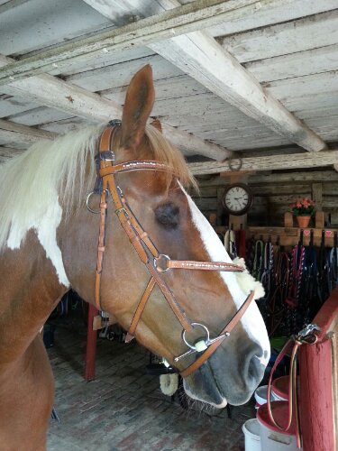 Ännu ett – för mig – nytt träns provades! Jag tycker att han blev supersnygg i det! Det nya bettet passade också bra.