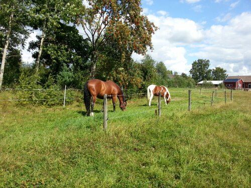Jag nyttjar Dacke och Dingo som gräsklippare! Det finns fortfarande finfint bete där hagen egentligen inte längre går då vi stängslade av en bit så att man kan gå fritt till och från dungen.