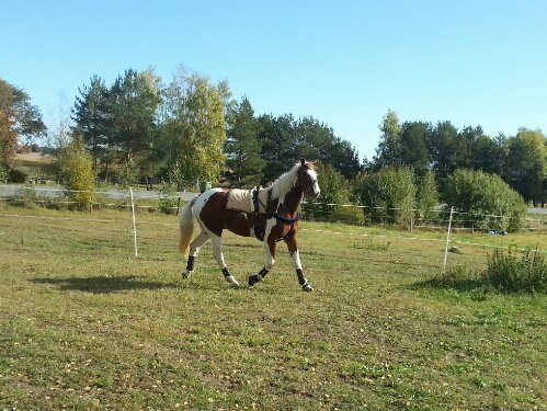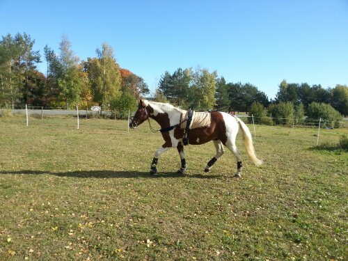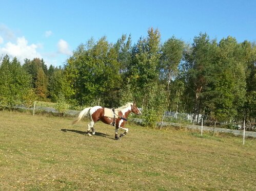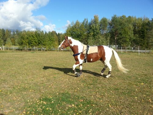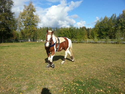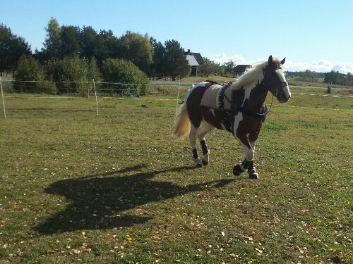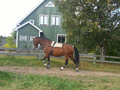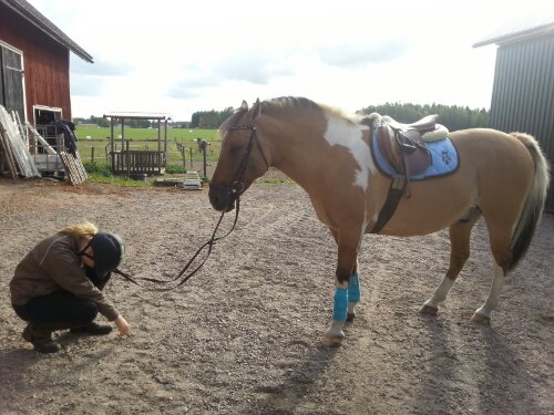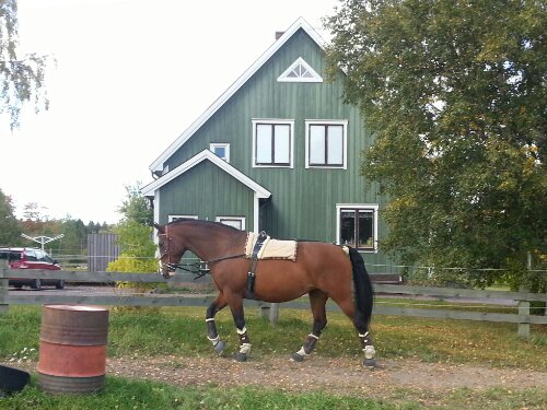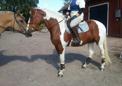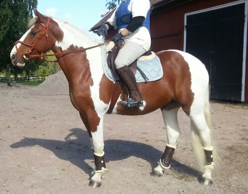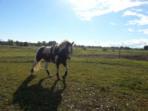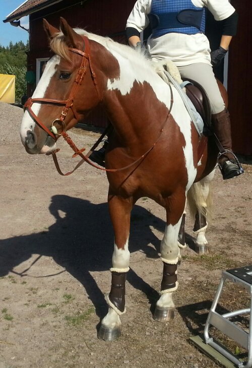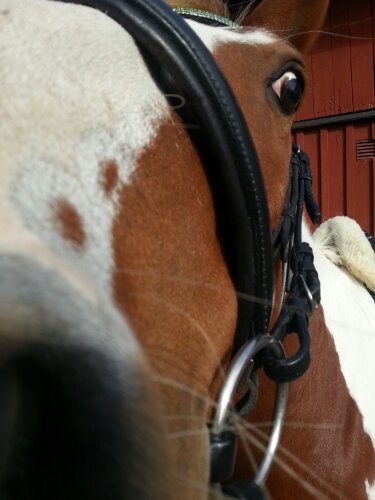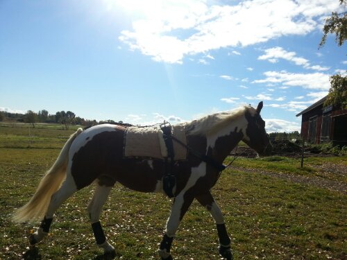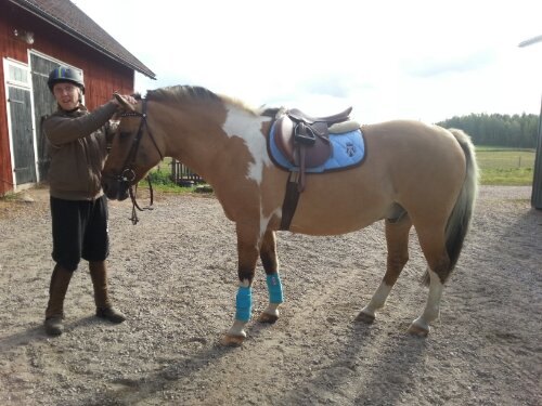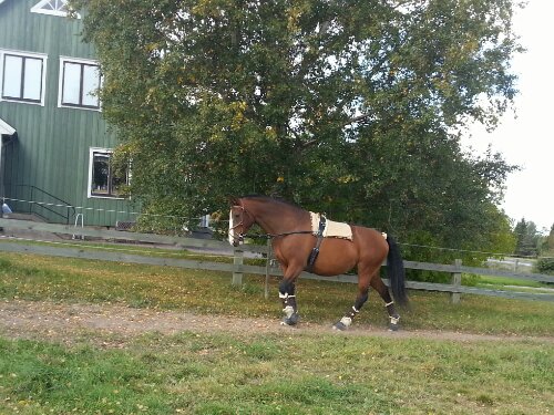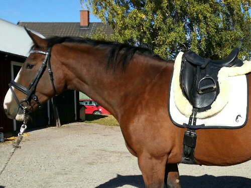 Idag gjorde jag någonting som jag inte har gjort sedan februari: Ridit Dingo! Det var första gången som han reds sedan han blev enögd. Jag visste inte vad jag kunde förvänta mig. Han har ju varit duktig på promenaderna, men inte varit riden på över ett halvår. Han var ju inte mycket riden alls (bland annat bara varit på två-tre uteritter) när han ställdes av så vad kunde jag förvänta mig att han skulle komma ihåg och vara villig att göra? Jag vet ju att han är en riktigt pigg liten sak så hur bra skulle han lyssna? Överskottsenergi? Och så var det ju det där med ögat – hur trygg skulle han känna sig under ryttare?