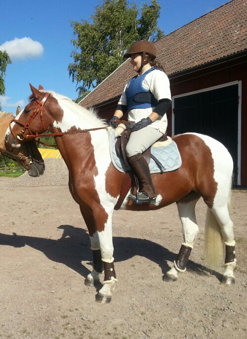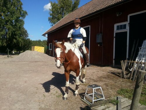 Ja, många frågor och funderingar kan man ha, men i slutändan så finns det bara en sak att göra: prova! Och jag kan ju lugnt påstå att det gick över förväntan. Han stod stilla när jag hoppade upp, lyssnade bra på hjälperna, var pigg, men relativt lugn – bortsett från att han hajade till på några saker här och där. Tillsammans med Angelica och Olle så fick vi en mysig liten skrittur med miljöträning.