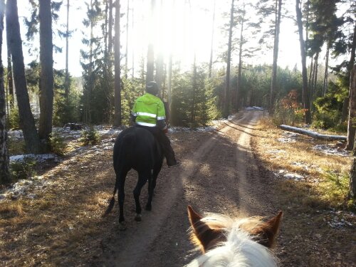 Det enda som han överhuvudtaget reagerade på var när vi skulle svänga lite kraftigare åt höger (hans blinda sida). Men, redan den tredje gången som vi gjorde en högersväng så verkade det som om att han inte tyckte att det var så obehagligt längre.