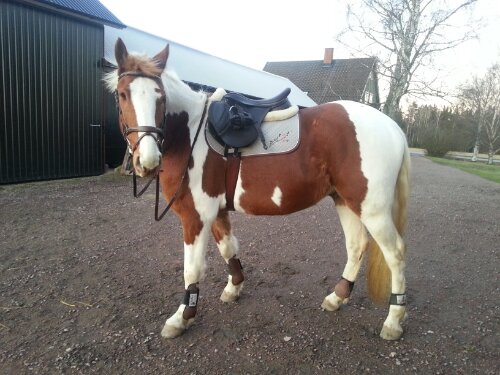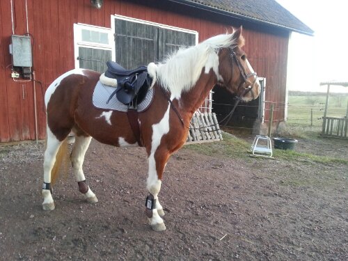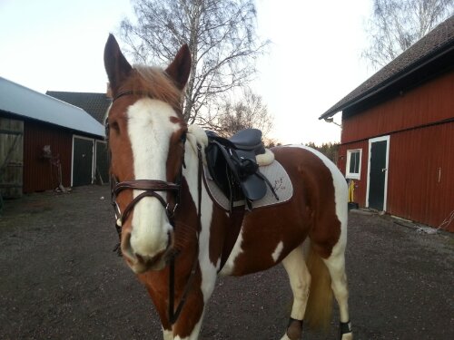 Det blev lite ridning på Dingo idag då jag testade en ny sadel (Thorowgood T6 Robert Whitaker). Jag kan inte bestämma mig för vad jag tycker om sadeln då jag ju älskar den jag har sedan tidigare (Knight’s Ivanhoe), men jag vet vad jag tycker om hästen i alla fall! Söt, go, rolig och en riktig piggelin! Han tuffade på som hejsan och i traven pinnade han på som en liten ponny! Han blev jätteglad åt att bli riden. Jättekul för både honom och mig!