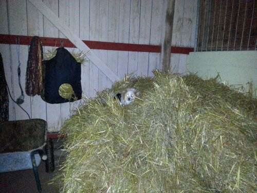 Det var fler än jag som inte uppskattade vädret idag. Hästarna var måttligt roade – speciellt Alice. En annan var lille Gizmo som trots ett fodrat Back on Track-täcke och en mysig håla i halmen såg lite frusen ut.