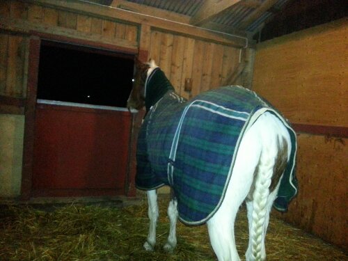 Jag skulle träna med Dingo igår (akademisk ridkonst), men trots att det var sagt att det inte skulle regna så regnade det till och från precis hela dagen och när det närmade sig dags för lektionen så började det regna jättemycket så jag beslöt att avboka lektionen.