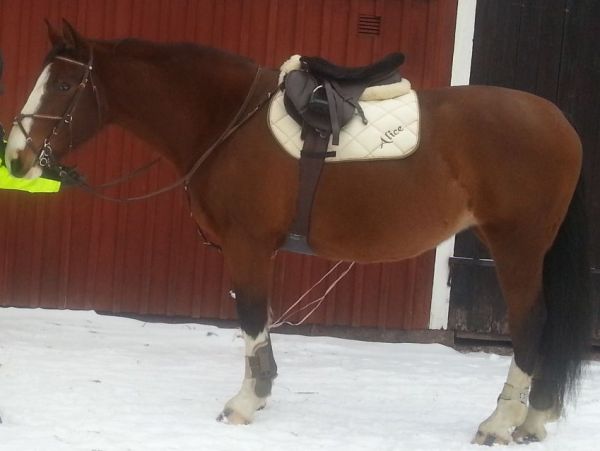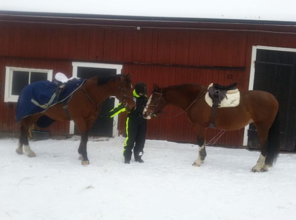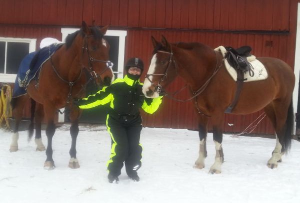 Jag gjorde en chansning idag. Trots att jag inte har ridit Alice på en månad, eller längre kanske det är, och trots att hon stod igår och trots att det blåste kraftigt så fick jag för mig att jag skulle rida ut på henne ihop med Sara och Dacke. Hon var minst sagt laddad. Spänd som en stålfjäder nästan hela turen, men det gick ändå ganska bra. Tills den allra sista sträckan. Då kommer ett ekipage travandes bakifrån och Alice ryckte till och skulle givetvis kolla in den nya hästen. So far so good. Vi stod still en stund medan vi ryttare konverserade lite och hon var faktiskt duktig och stod stilla. Sedan skulle vi rida hemåt.