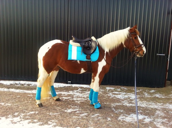 Lördagen den 25 januari blev det lite ridning på min sötnöt. På schemat stod mest skrittarbete och lätt klättring, men det blev även lite trav och pyttelite galopp. Jag slängde dessutom in lite voltarbete genom att rida på åttvolt över en låg stock i skritt och sedan i trav. Pigg och glad som vanligt, men lite vingligt även om det blev bättre och bättre. Vi har mycket stärkande och lösgörande arbete framför oss samt en hel del utbildning. Men, det är ju det som är roligt med unghästar!