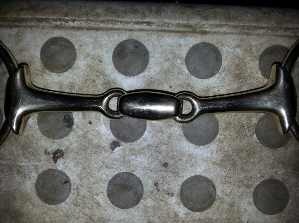 Jag har nu testat ”anti-nyp-bettet” från Haglunds på Dingo och det verkar som om att han ”gillar” det. Det är ett smalt, tredelat, anatomiskt utformat bett gjort av en metall som verkar salivframkallande – vilket uppmuntrar hästen att suga på det.