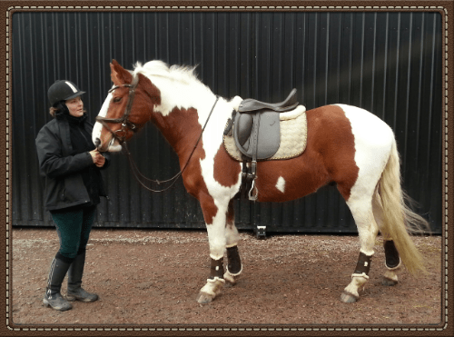 Valencia bomlös dressyrsadel med Claridge House stgläder, islandsstigbyglar, HKM fårskinnspad, Copperfield schabrak och svängd, anatomisk dressyrgjord med bred mittenplatta.