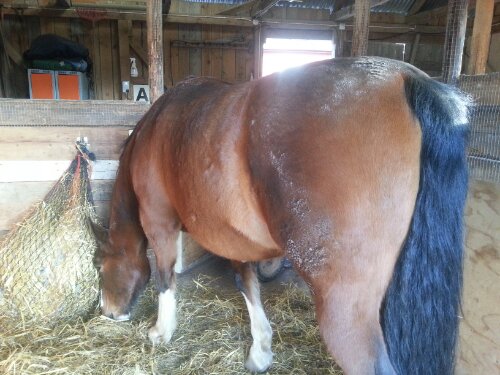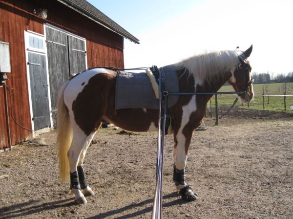 Och mitt knä? Det gick faktiskt bra! Jag hade ortosen på mig och den och voltigegjorden (samt hans kroppsform) gjorde att knät hamnade i ett sådant läge att den del som fortfarande är öm vid ”kontakt” inte kom emot honom så det var ju bra. Sedan fick jag ju givetvis tänka noggrant på hur jag satt upp och satt av för att minska risk för belastning.