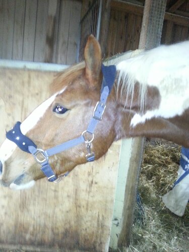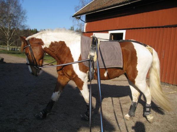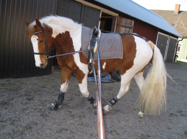 Idag blev det ridning för första gången sedan jag skadade mig. Jag kunde helt enkelt inte bärga mig längre! Jag var tvungen att prova hur det kändes. Jag valde att rida med voltigegjorden då jag inte tror att knät klarar sadel och stigläder/stigbyglar än.