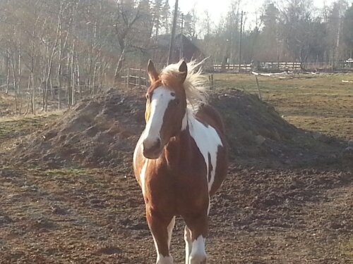 Jag trodde att han skulle vara lugn då han fick springa och hoppa av sig ganska ordentligt igår på löshoppningen, men icke! Han var pigg som bara den! Jag fick bromsa, bromsa, bromsa och lugna, lugna, lugna länge innan han till slut slappnade av. Han var dessutom likadan nu som första gången som jag provade att rida honom barbacka = vinglig. Det svåra med när han börjar vingla och kråma sig är att jag får sitta och parera hela tiden och i och med att jag gör det så ger jag ju honom sitshjälper/signaler och det får honom – som den unghäst han är – att reagera på dem och vingla ännu mer så jag får göra allt jag kan för att sitta så still som möjligt och försöka bromsa, driva och räta upp honom på samma gång. Svårt – ja, men till slut så fungerade det.