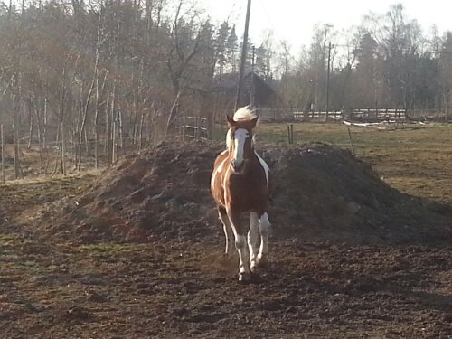 Dingo var ju för söt! Han stod uppe på banken och solade när han fick syn på mig och skyndade då ner och galopperade sedan fram till mig. Älskade sötnöt!