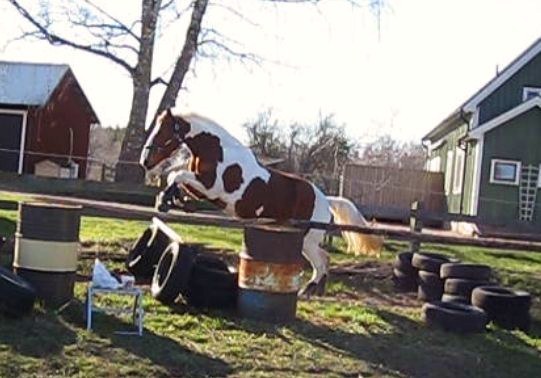 Igår så fick Dingo löshoppa och det var verkligen uppskattat! Han tyckte att det var jättekul, men var lite slarvig så länge det bara var markbommar och pyttehinder. Orka lyfta på tassarna då – tyckte han. Först när jag höjde upp till tydligare hinder så brydde han sig om att koncentrera sig. Hahah – precis likadan som Lady (min första ponny)!