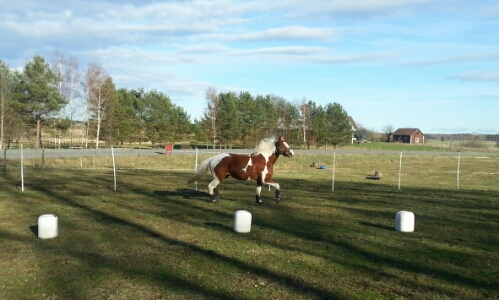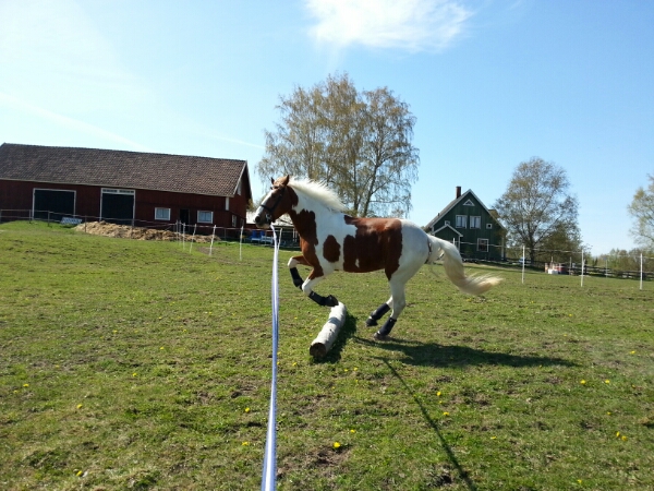Men, idag – efter en vilodag – så rörde han sig bättre trots att jag pressade på med klättring och longering över stocken i både trav och galopp. Hm… Jag vet inte vad jag ska tro?! Och – hur jag ska göra? Fortsätta köra på med hans träning, backa några steg och bara träna väldigt försiktigt, eller lägga pengar på att ta honom till kliniken för spattundersökning?