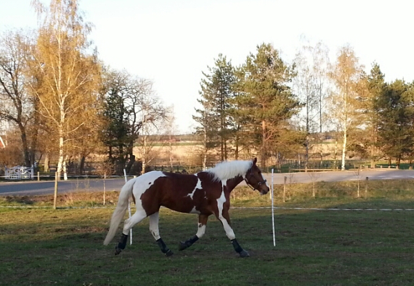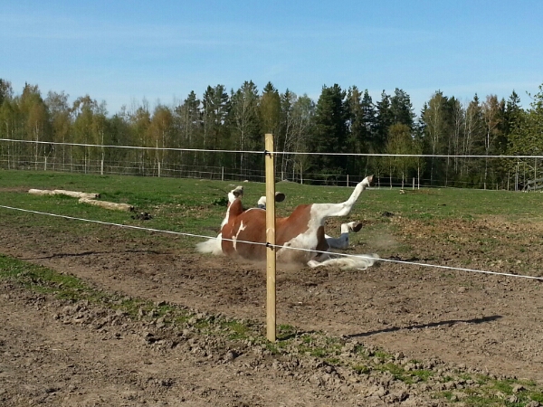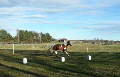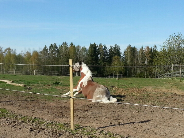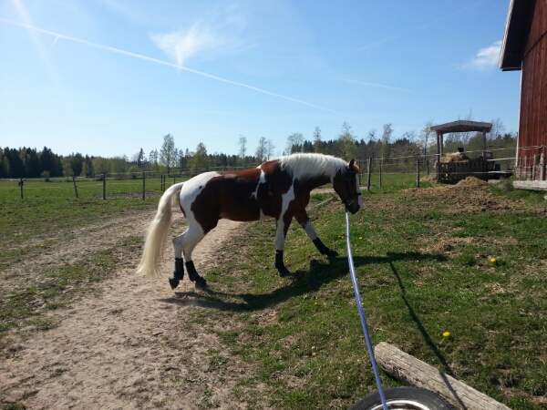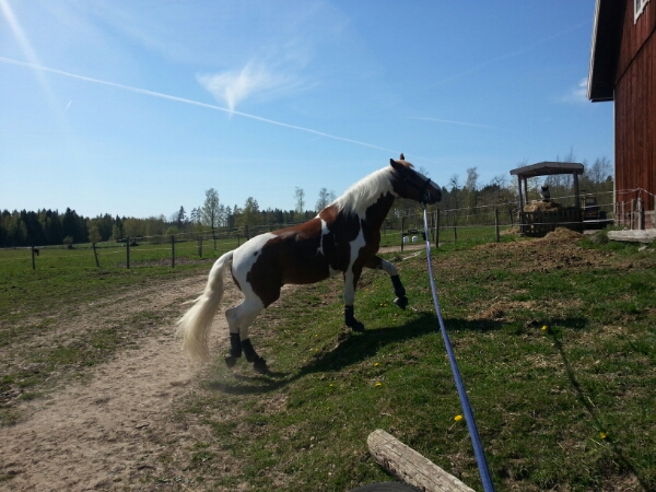 Problemet med att motionera Alice är att hon inte kan hålla sig på mattan! Hon hoppar, bockar, stegrar och rusar när jag longerar och löslongerar och hon skötte sig ju inte när jag red ut heller. För att kunna rida henne lugnt så måste hon göra av med överskottsenergi och hur gör jag det utan att överanstränga henne??