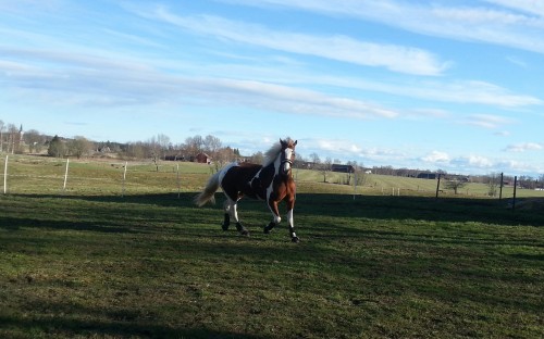 Så – igår fick Alice göra någonting för första gången sedan slutet på januari och mycket riktigt så skötte hon sig fint. Hon såg dessutom ut att vara nöjd och glad över att äntligen få göra någonting igen. Förhoppningsvis så innebär detta att jag kommer att kunna rida henne igen! Det blir dock inga uteritter på ett bra tag – heheh…