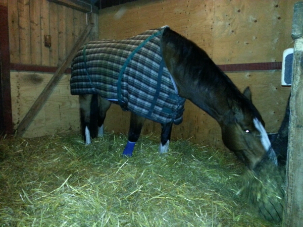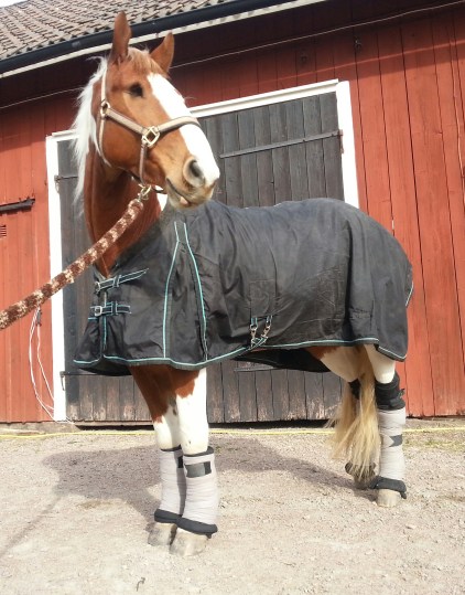 Efteråt så blev det några timmar Back on Track-inbäddning med täcke, hasskydd och stallpaddar runtom. Förhoppningsvis så gör det gott för hans kropp.