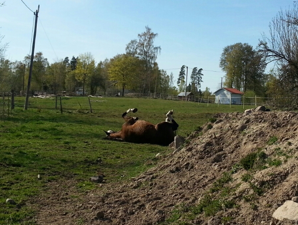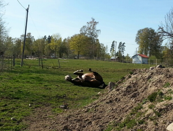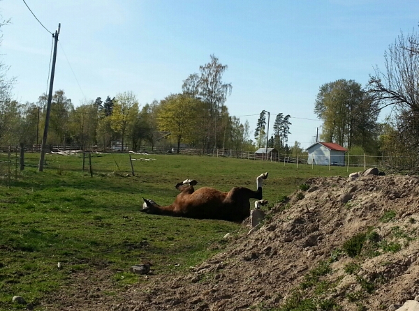Det var härligt vårväder idag! Fler sådana här dagar, tack! Det tycker nog hästarna också. De ser i alla fall väldigt nöjda ut när de står och njuter i solen.