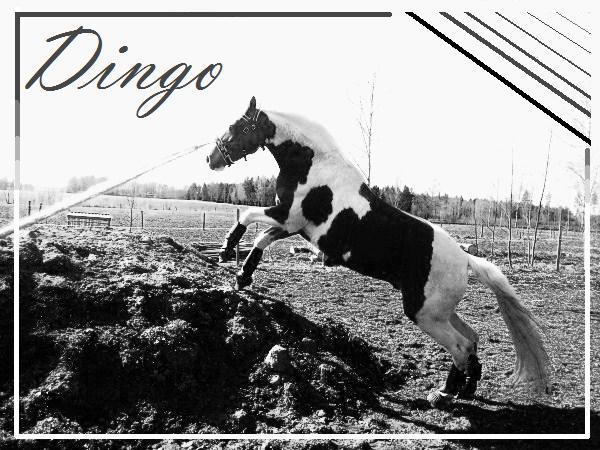 Igår så fick Dingo ett kombinerat longerings- och terrängpass! Jag longerade honom i hagen där han fick jobba upp och ner för banken, skritta och trava över en ”stock” samt hoppa över ett litet nedfallet träd. Han var galet pigg och ibland så hade jag fullt sjå med att hålla honom så det blev i princip inget filmat eller fotat. Men, jag gick tillbaka till banken i slutet på passet – när han hade hunnit bli lite trött – och hade då tillräcklig kontroll för att våga plocka upp mobilen för att knäppa några foton.