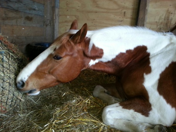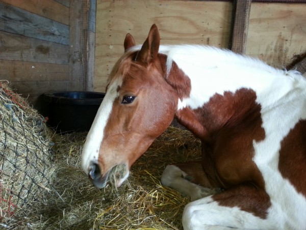 Jag satte mig i halmen och myste en stund tillsammans med honom och han reste sig inte utan låg lugnt kvar och käkade vidare. Jag försökte ta en ”selfie” på oss, men fick inte till något så det blev istället några bilder på bara den sötaste av oss.