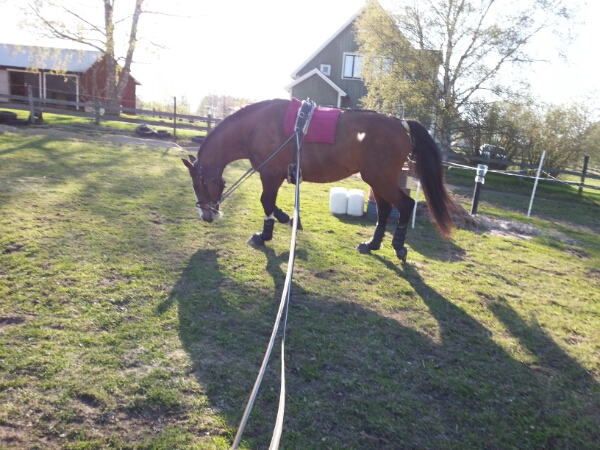 Så – igår fick Alice göra någonting för första gången sedan slutet på januari och mycket riktigt så skötte hon sig fint. Hon såg dessutom ut att vara nöjd och glad över att äntligen få göra någonting igen. Förhoppningsvis så innebär detta att jag kommer att kunna rida henne igen! Det blir dock inga uteritter på ett bra tag – heheh…