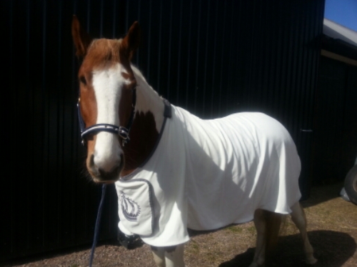 Longergjord med fårskinnsunderlägg (vet ej märke), brösta (tror det är Knight’s) med Horsepol teddyludd, chambon (minns inte märket), longerlina köpt på Ge-Kås samt longerdelta köpt på Hööks.