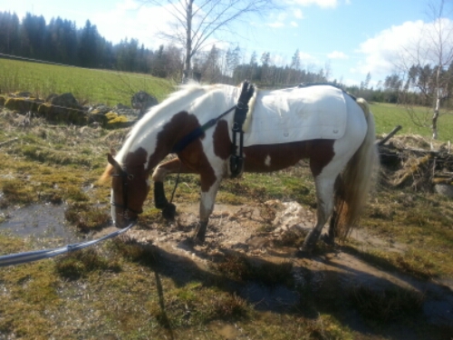 Igår longeringspromenerade jag Dingo i en av hagarna. Tanken var ett lugnt pass i skritt och trav bara för att röra igenom honom då han hade stått i fem dagar. Dingo hade dock andra planer.